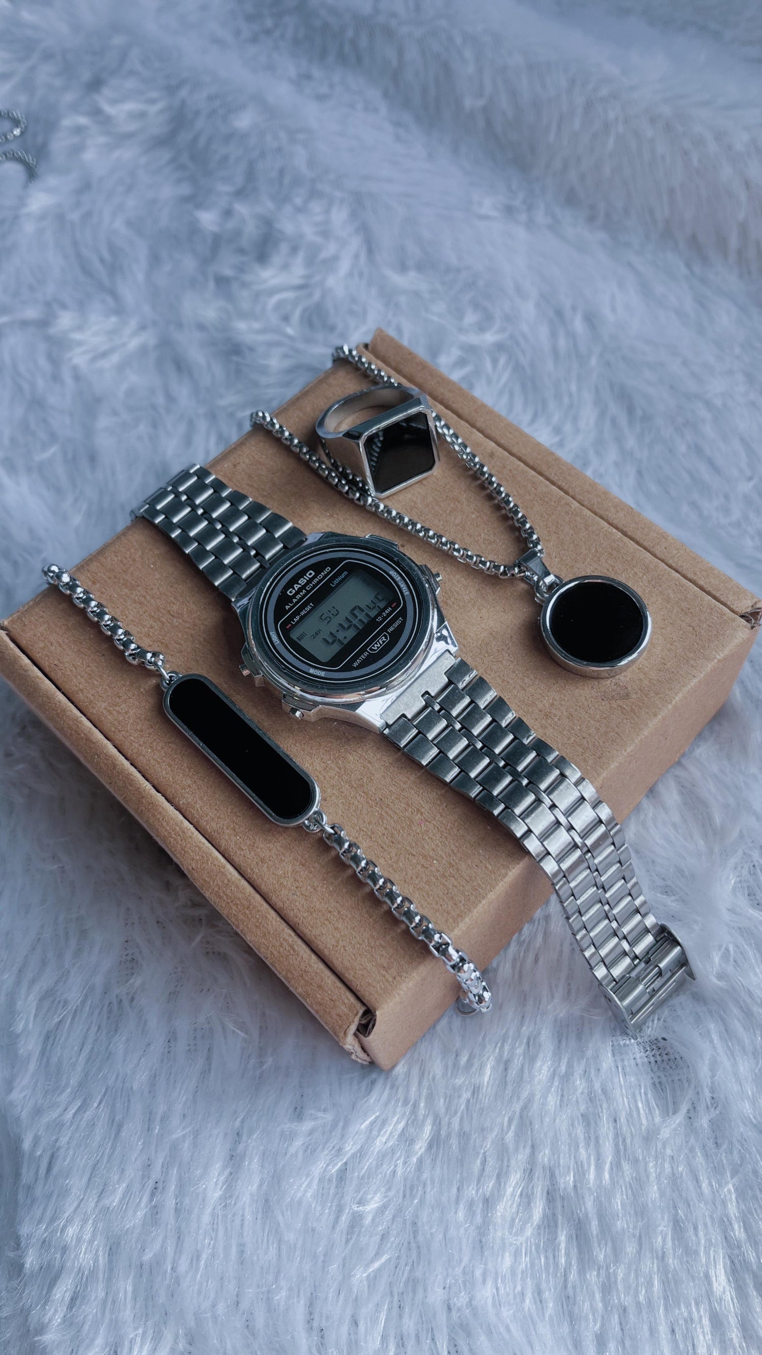 Round Dial watch and Round dotted chain, Bracelet and ring